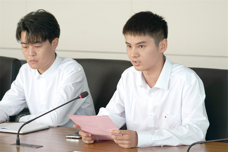 新入职员工代表崔洪博对领导们给予的关怀与重视表示感谢,并结合岗位职责、立足自身成长畅谈了入职以来的切身感受。作为jinnian金年会新的一员,他代表全体新员工对后续工作开展做出承诺:要争当先行者,立足公司远大的发展前景树立个人目标,对标优秀员工学习其先进事迹,把持之以恒的学习提升作为职业生涯的基本素养,做好、作细、做实工作中的每一件事情,在平凡的岗位上创造出优秀的业绩。